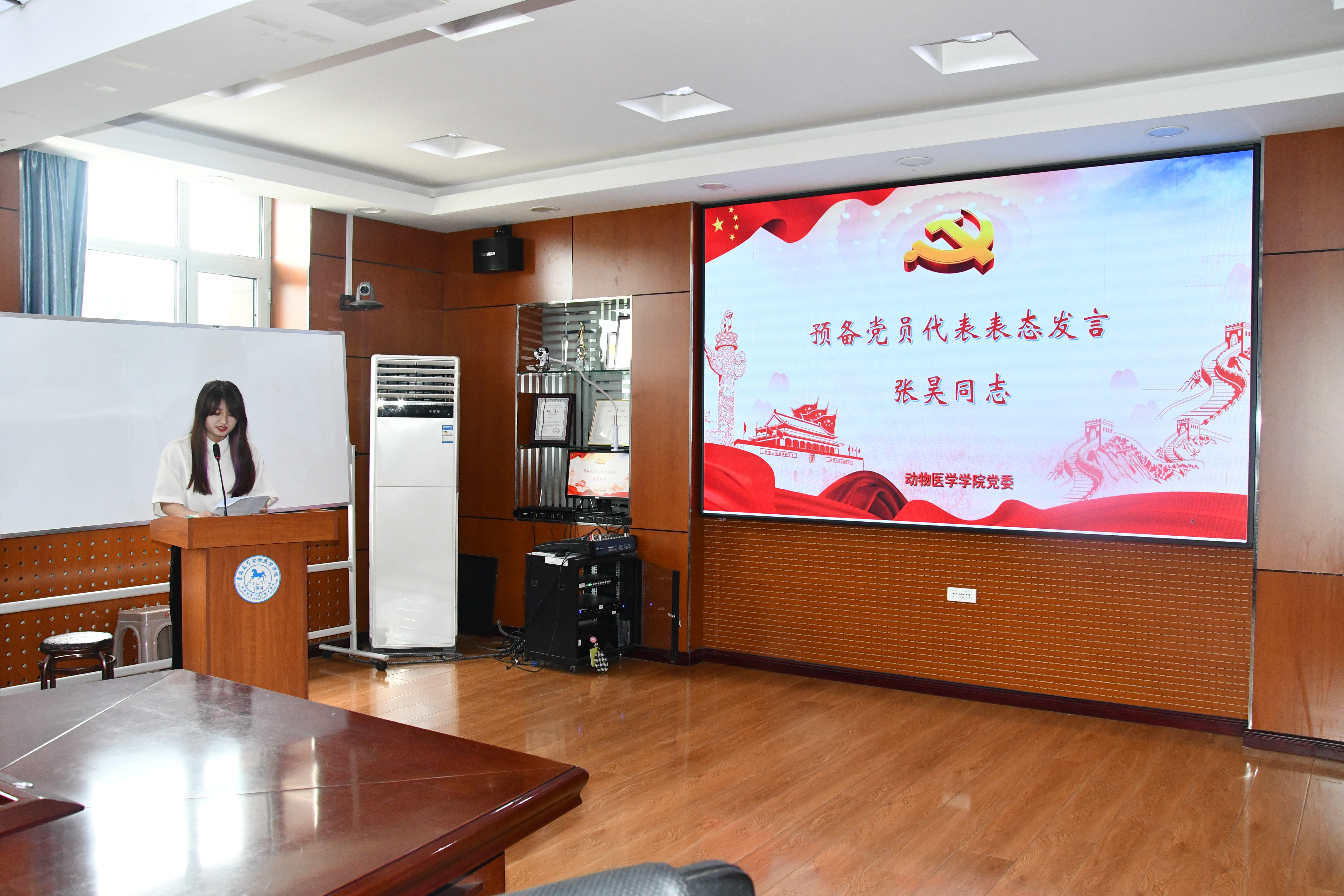 党委在兽医楼三楼会议室召开了庄严而隆重的新党员入党宣誓活动。学院党委副书记秦明、党委办公室负责人解胜男参加了此次活动。
