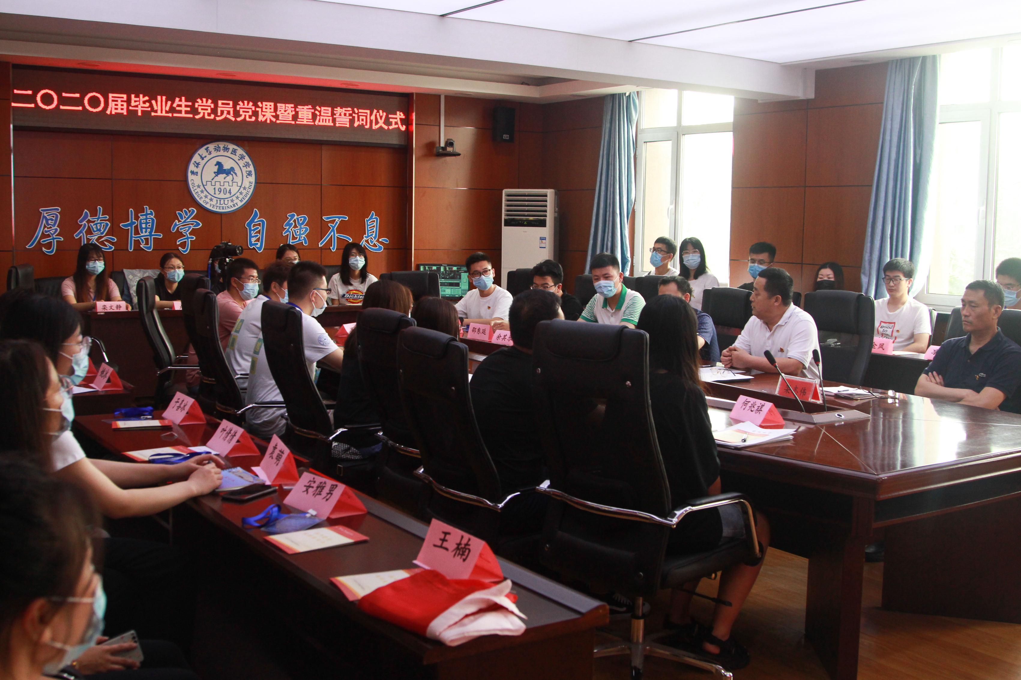 在综合楼三楼会议室举办二〇二〇届毕业生党员党课暨重温入党誓词仪式。学院党委书记王彦清,副书记栾志伟、饶家辉,以及全体毕业生党员参加了此次会议。