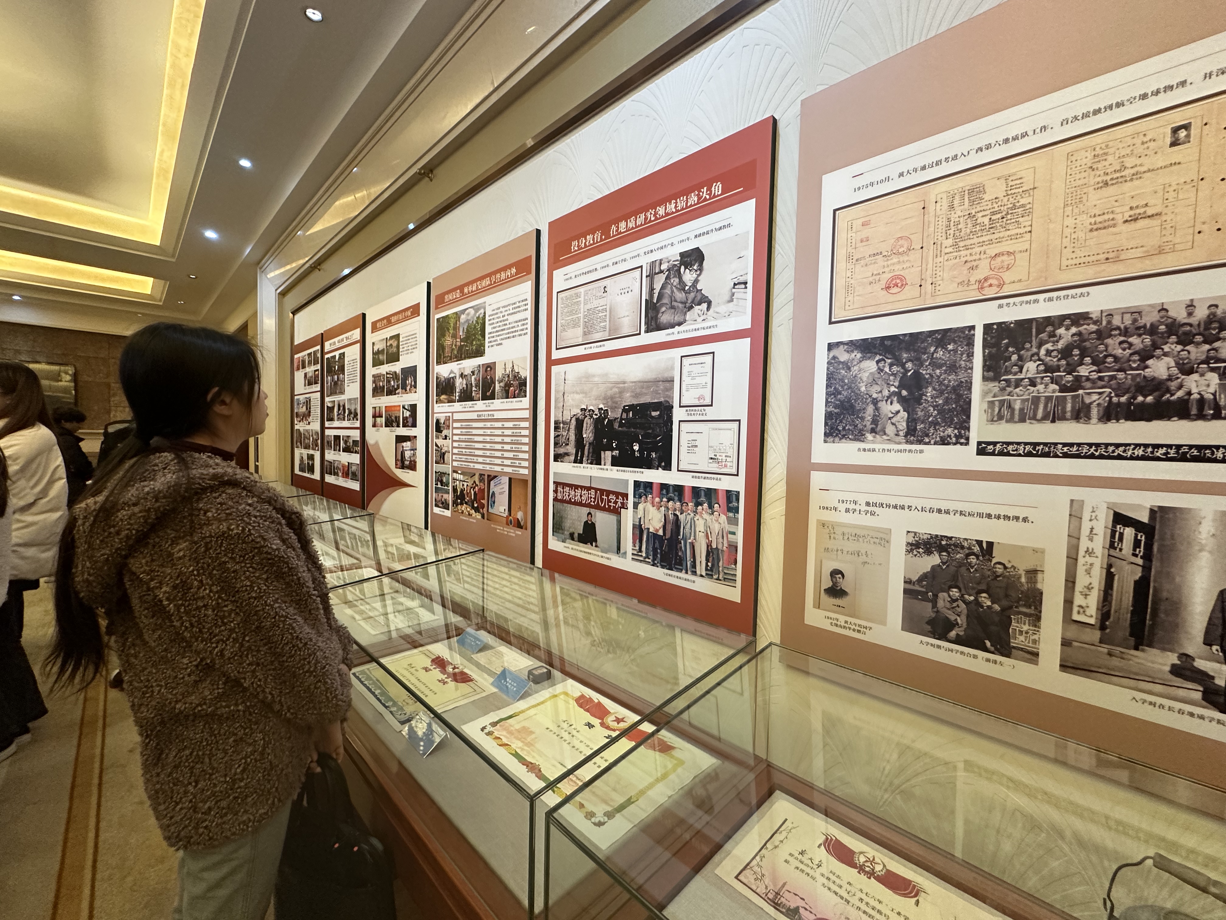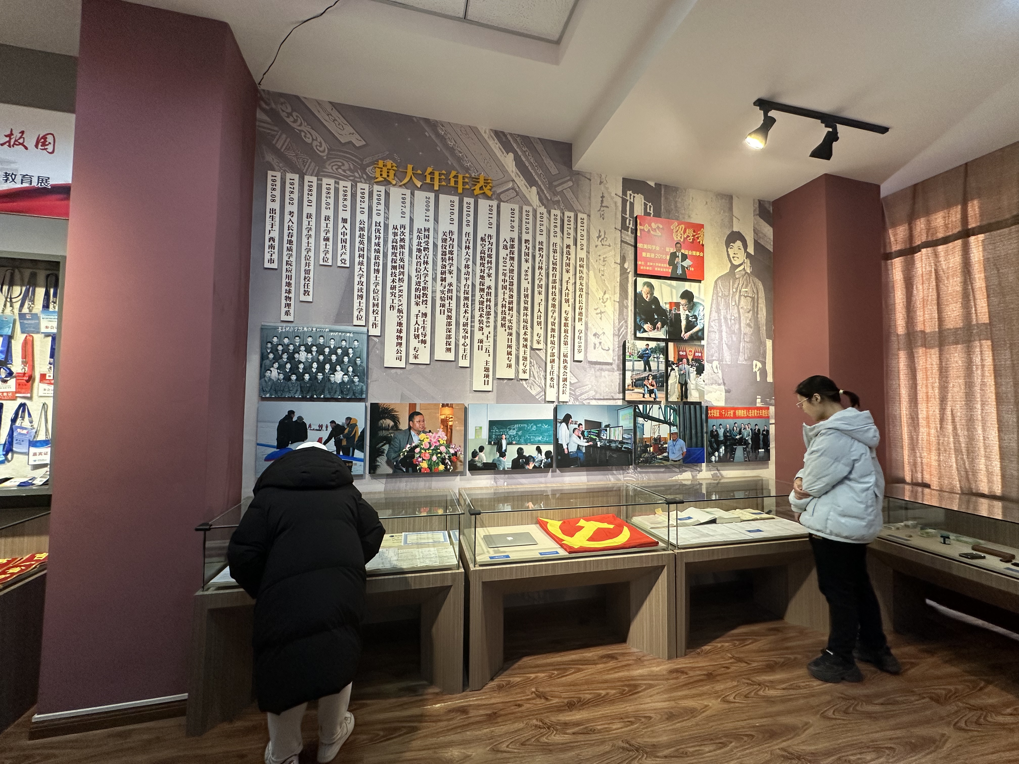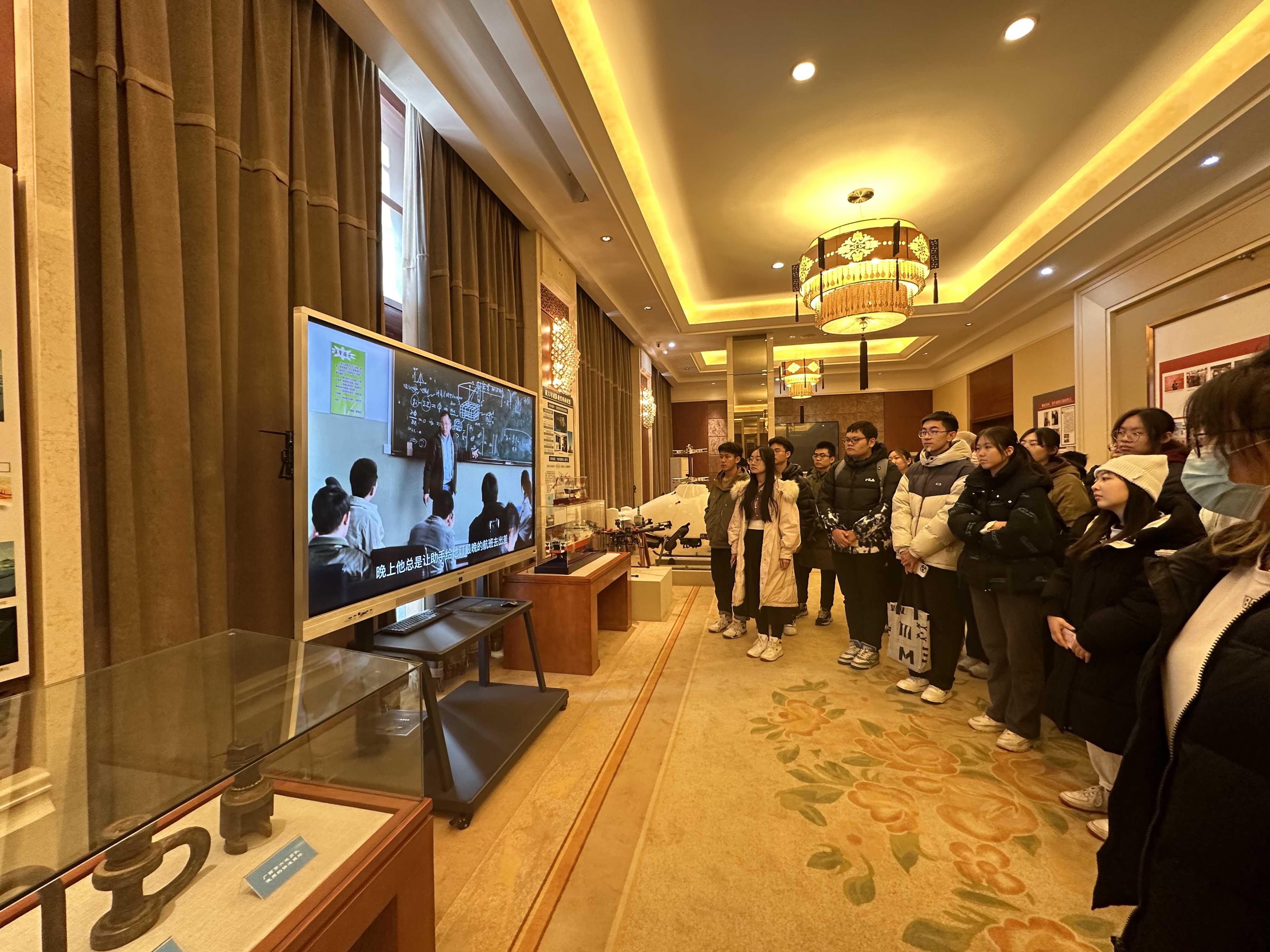 11月14日中午,学生们集体乘坐大巴车车前往黄大年纪念馆。到达纪念馆后,师生们在讲解员史老师的带领下先后参观了图片实物展示区、荣誉室和办公区。