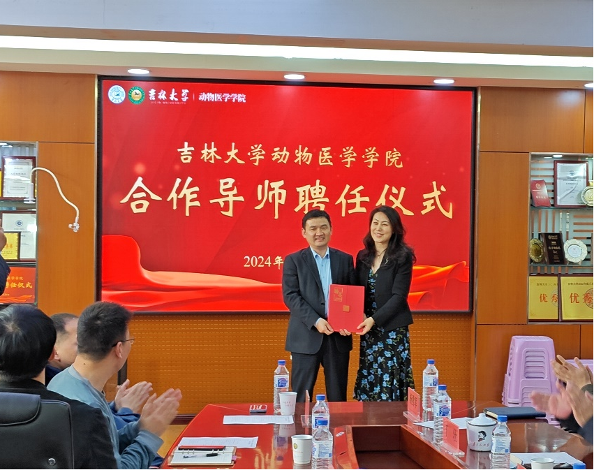 合作导师聘任决定,为天津瑞普生物技术股份有限公司副总裁朱秀同、总经理任培森颁发聘书。