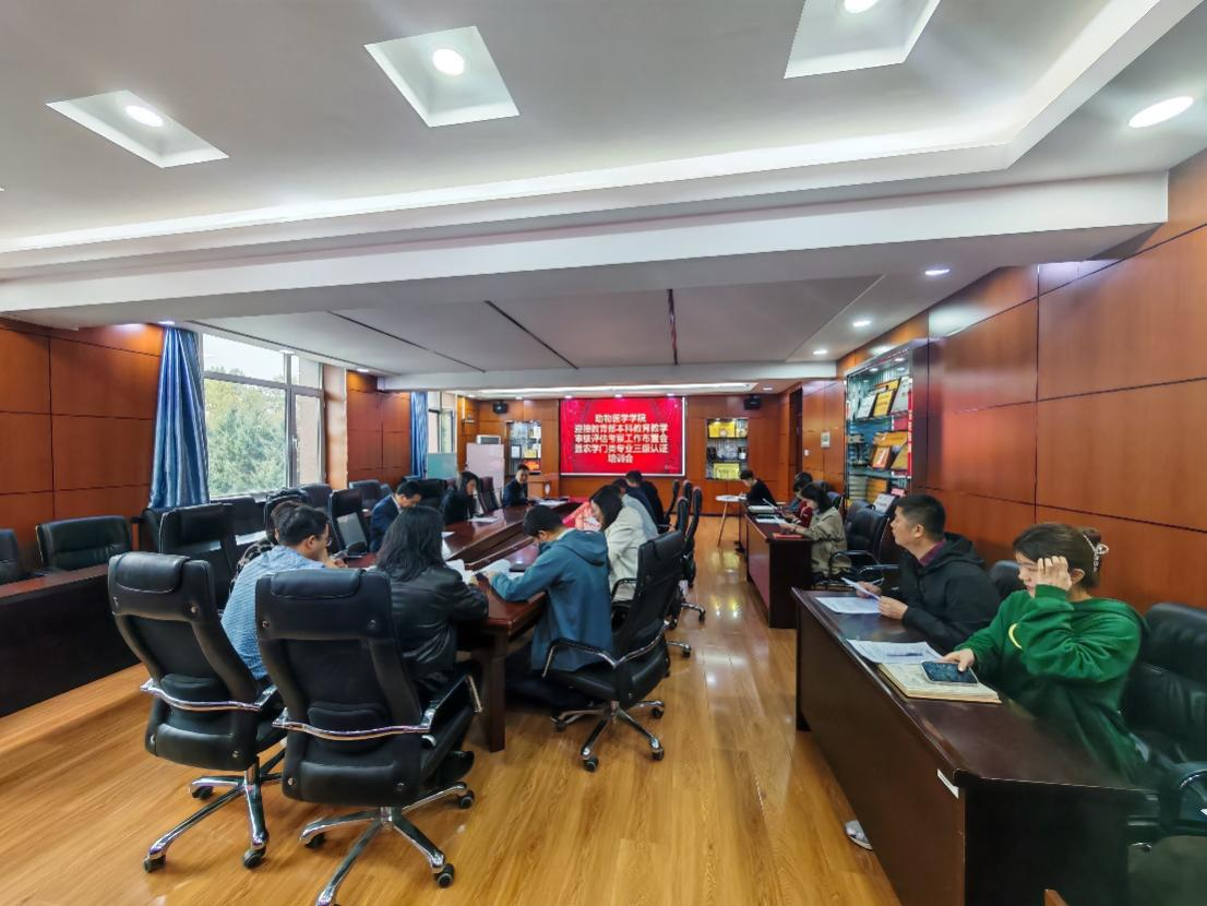 迎接教育部本科教育教学审核评估考察工作布置会暨农学门类专业三级认证培训会”,学院领导班子、学术委员会全体委员、教学委员会全体委员、系主任、教学动物医院负责人、实验中心负责人、各行政办公室主任参加了会议,会议由av动漫