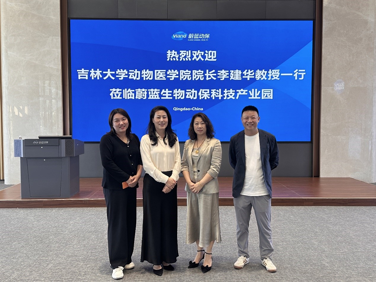 仪式后,参会人员一行前往蔚蓝生物动保科技有限公司进行实地参观。双方就产学研合作模式、科研项目对接、人才培养计划等议题展开座谈,进一步深化合作意向。蔚蓝生物动保科技有限公司丛雁芳经理表示,将在人才培养、技术研发、实验平台共享等方面与av动漫