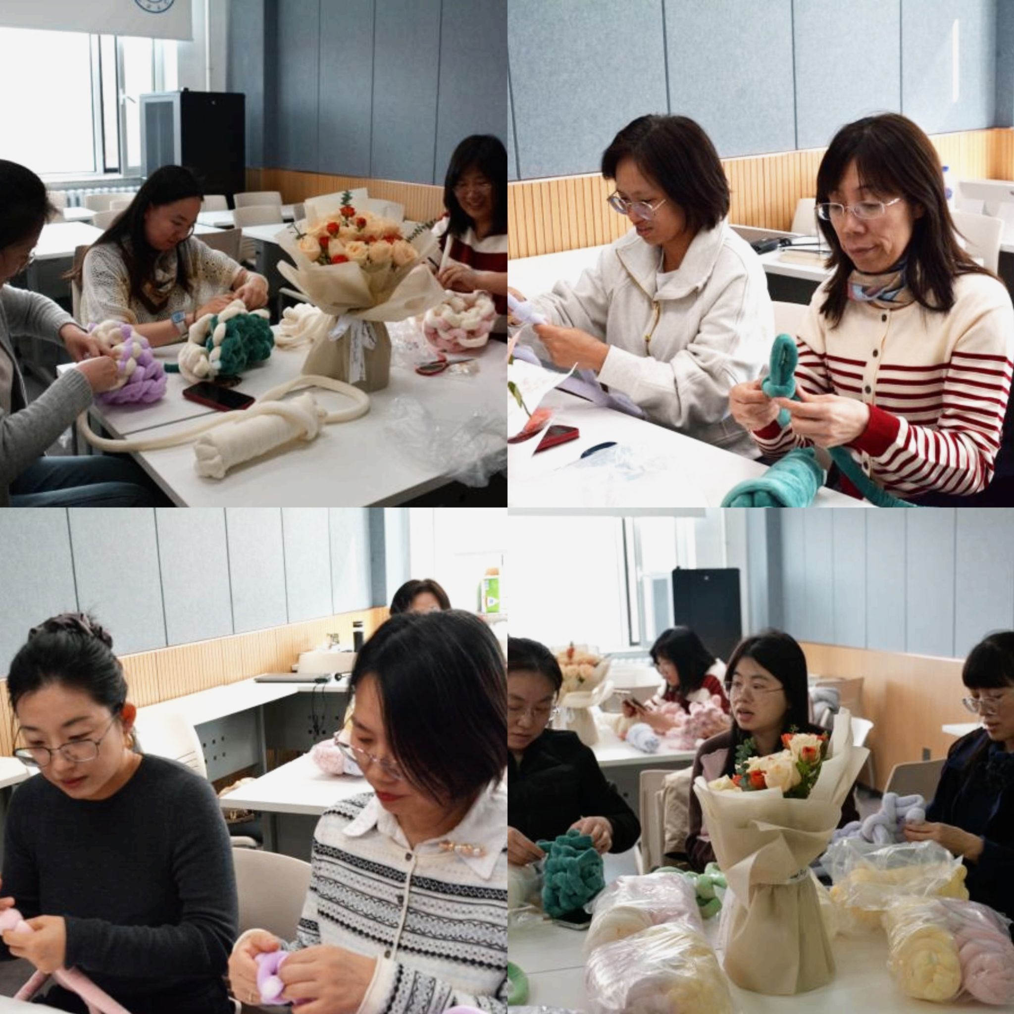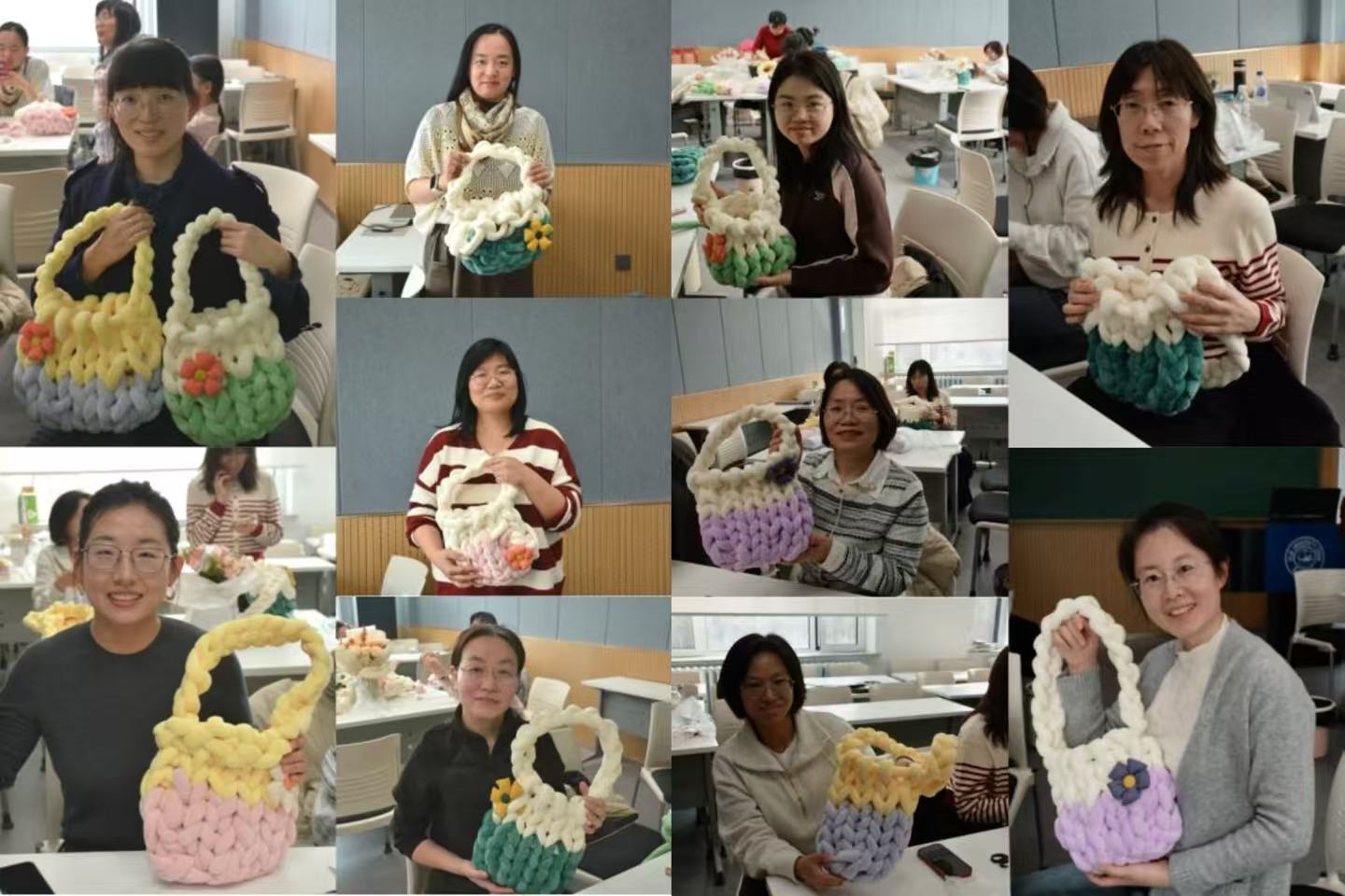 每位老师都化身为心灵手巧的编织者,一边绕线打结、精心编织,一边分享生活与工作中的点滴。在动手实践中舒缓压力,在交流互动中增进情谊。
