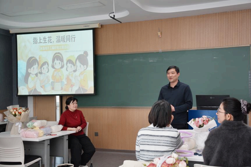 妇委会联合知联会共同组织的“指上生花,温暖同行”冰岛线手工编织包主题活动于科学讲堂305成功举办。本次活动由伊鹏霏老师主持,人兽共患传染病重症诊治全国重点实验室宋吉武副主任和学院部分女教师共同参与。